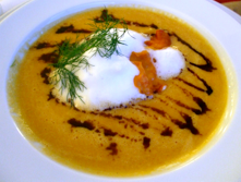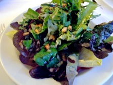 The soup is served with a drizzle of balsamic vinegar and is delicately seasoned, which I like. A salad that starts off looking run of the mill is anything but. The pumpkin seed dressing and the hidden tomatoes, cucumbers, beets and carrots give it a unexpected twist.