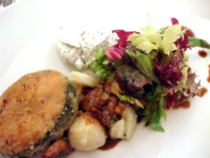 The substantial portion of grilled veal was rare, salty and tasty. Two appetizers and one main course is more than plenty of food and will keep you on track budget-wise. The wine list is a rather weak selection of French bottles. The fun neighborhood and good food still make it worth the visit.