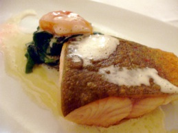 Angler fish is overwhelmed by its accompanying curry sauce, yet the arctic char has perfectly crisped skin, although it, too, could benefit by a lighter hand with the sauce.