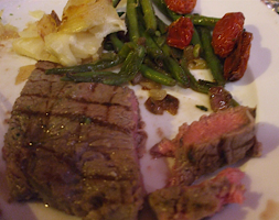 The beef, topped only with fleur de sel (the best combo), is tender and delicious. Its accompanying sauce marries well without masking the beefy taste. The guinea is doused with a heavy hand of buttery foam, but the breast is juicy and comes with a minty, bright puree of peas.