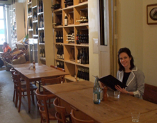 Communal farm tables are located inside and on the sidewalk while wines quaintly provide the decoration for many of the interior walls. The menu runs the gamut of very serious, elaborate dishes to simple cheese and salumi platters. Prices vary accordingly. The waitress happily pours complementary samples of open wines and provides a brief explanation (even for my one glass decision). She is cheerful and seems to enjoy practicing her English as much as I enjoy not having to read the menu in German (which I don’t speak). I love the grauerburgunder, a pinot gris.
