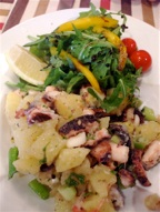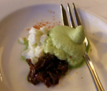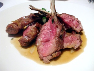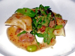 Agnoletti stuffed with rabbit meat and liver are served in a mustard sauce with fava beans and the rabbit kidney. The organ meats are mild, and the the dish overall is extremely well-executed. Good to the last bite!